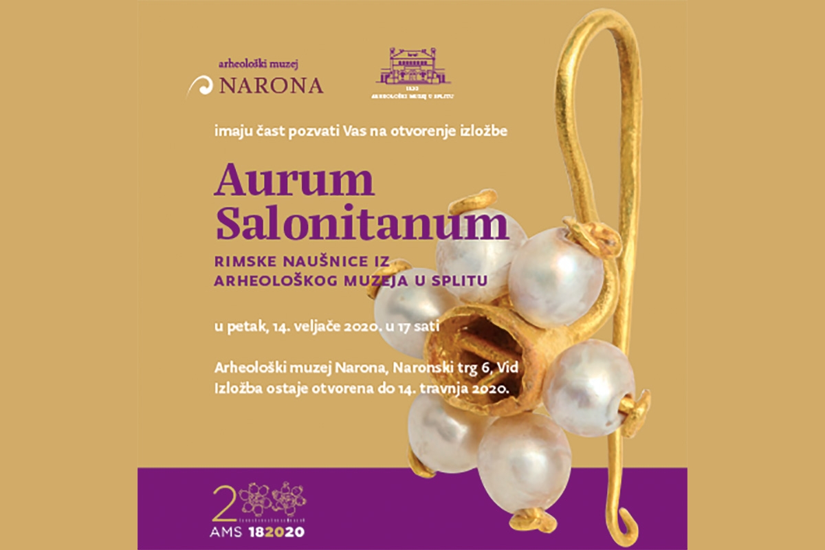 Povodom obilježavanja 200-te obljetnice od osnivanja Arheološkog muzeja u Splitu, najstarije muzejske institucije u ovom dijelu Europe, u Arheološkom muzeju Narona organizirano je gostovanje izložbe Aurum Salonitanum. Rimske naušnice iz Arheološkog muzeja u Splitu. Kao omiljeni dio nakita rimskih žena naušnice su se izrađivale u različitim oblicima, od jednostavnih do luksuznih primjeraka ukrašenih biserima, dragim i poludragim kamenjem te staklenom pastom. Na izložbi je prezentirano oko 90 zlatnih naušnica koje potječu iz Salone, glavnog grada rimske provincije Dalmacije. Najveći broj naušnica se datira u razdoblje od 1. do 4. st., osim onih pronađenih u Dioklecijanovoj palači u zatvorenoj grobnoj cjelini iz 1. pol. 5. st. i privjeska naušnice u obliku okrenute piramide vremenski određenog u 6. st. Luksuzniji primjerci se ističu iznimnom ljepotom i kvalitetom izrade poput para naušnica u obliku cvijeta, ukrašenih biserima koje je u 3. st. nosila mlada Salonitanka Atija Valerija.