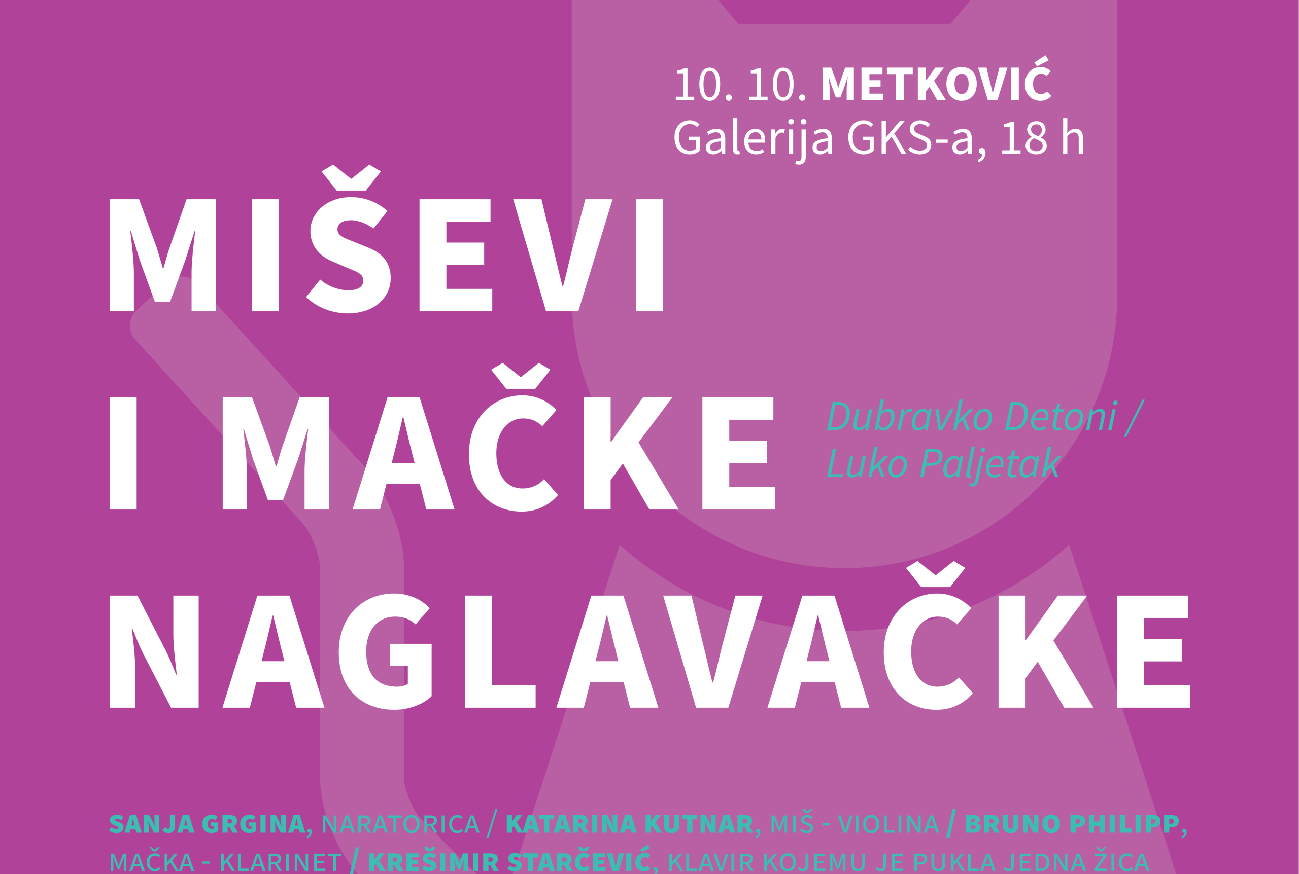 U petak, 10. listopada 2025. godine u 18 sati, u Galeriji GKS-a održat će se glazbeno-scenski program za djecu pod nazivom Miševi i mačke naglavačke, nastao prema istoimenoj zbirci pjesama jednog od najvažnijih hrvatskih autora za djecu, akademika Luke Paljetka.