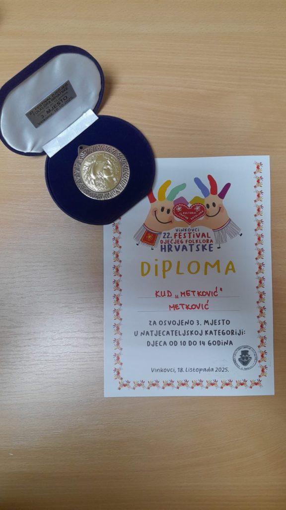 Osim brončane medalje, KUD „Metković“ nagrađen je s dva pansiona u ugostiteljskim objektima Vukovarsko-srijemske županije za sudjelovanje na 23. Festivalu dječjeg folklora 2026. godine, koje im osiguravaju Grad Vinkovci i Vukovarsko-srijemska županija, uz obvezu revijalnog nastupa.