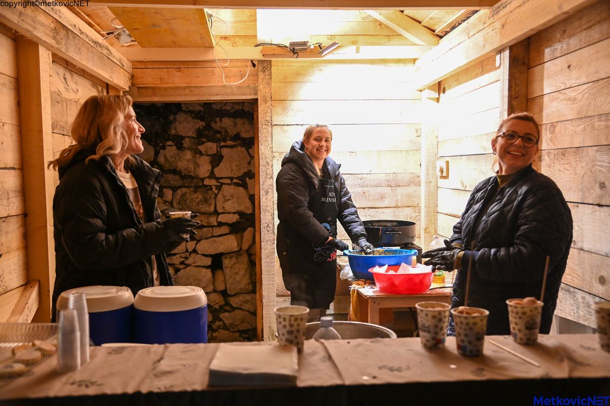 Da bi doživljaj bio potpun, pobrinula se i gastronomska ponuda – posjetitelji su se grijali i družili ispred „Slatke kućice“ uz miris toplih fritula i čaja, što je dodatno doprinijelo toploj atmosferi hladne zimske večeri.