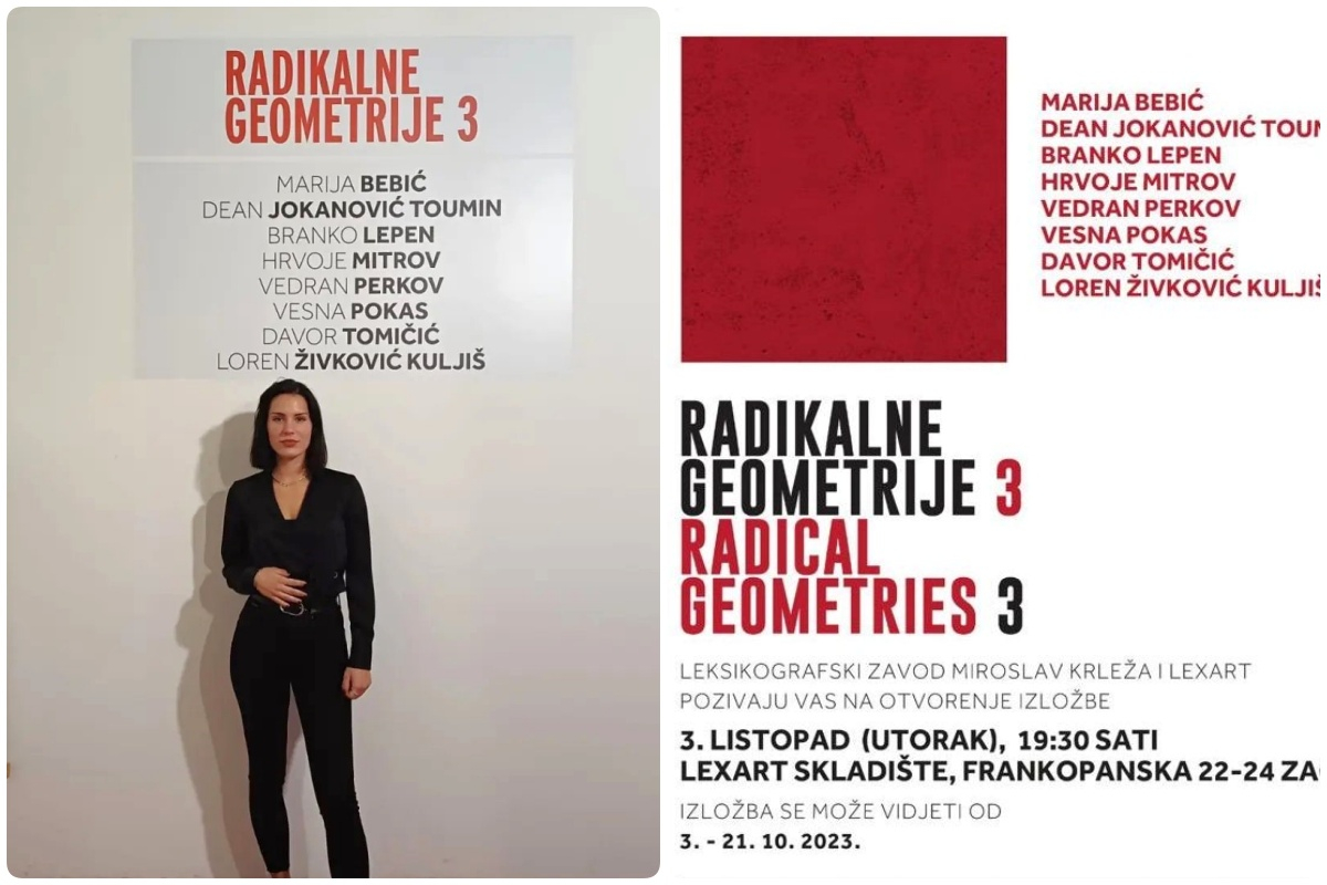 Grupna izložba pod nazivom ‘Radikalne geometrije 3’ otvorila se u utorak 3. listopada u 19.30 sati u LEXART skladištu u Zagrebu. Izložbu će se moći posjetiti do 21.10.2023. Netom diplomirana slikarica, Marija Bebić, na Umjetničkoj akademiji u Splitu u klasi profesora Vedrana Perkova dobila je već priliku izložiti svoj rad, pod imenom Okus boli, rame uz rame s renomiranim hrvatskim slikarima, a oni su: Dean Jokanović Toumin, Branko Lepen, Hrvoje Mitrov, Vedran Perkov, Vesna Pokas, Davor Tomičić i Loren Živković Kuljiš.