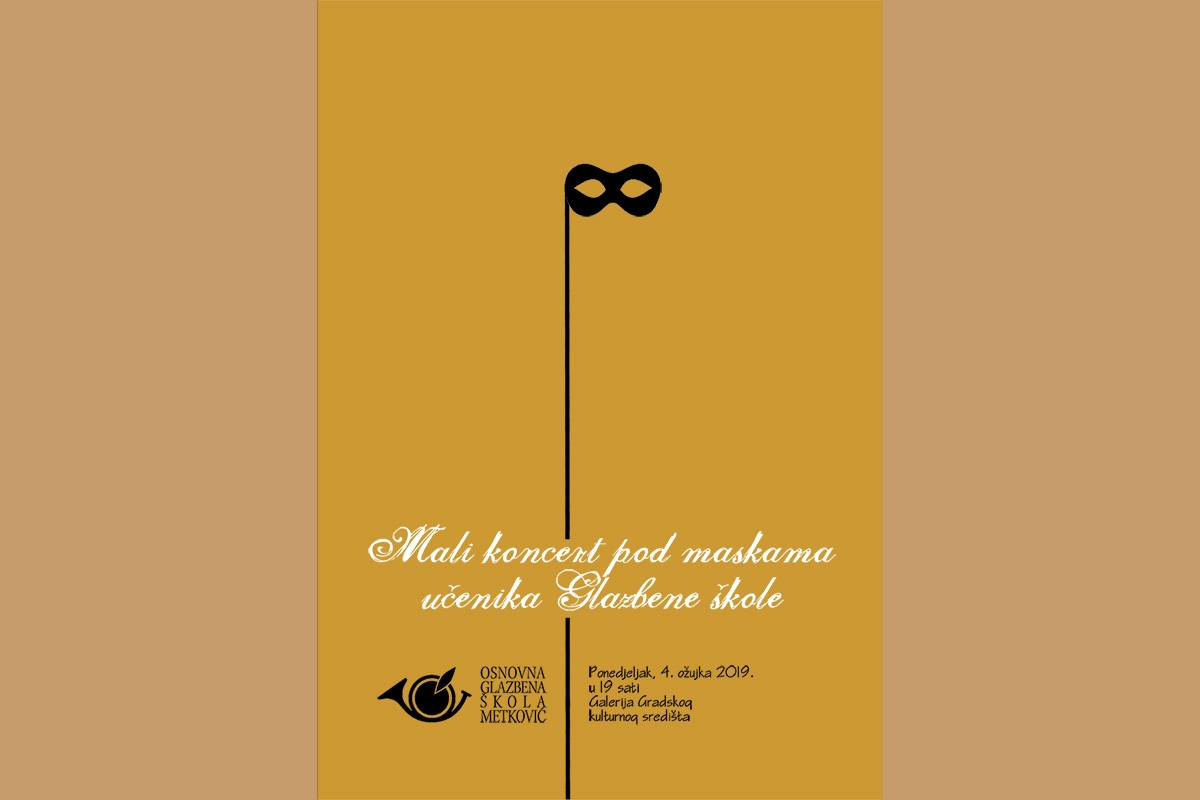 Pozivate se na ‘Mali koncert pod maskama učenika Glazbene škole’ Metković, koji će se održati večeras 4. ožujka 2019. u 19 sati u galeriji GKS-a u Metkoviću. Dobro došli