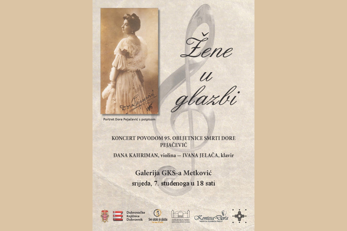 Pozivate se na koncert ‘Žene u glazbi’ povodom 95-godišnjice smrti Dore Pejačević. Koncert se održava 7. studenog 2018. u galeriji GKS-a s početkom u 18 sati.