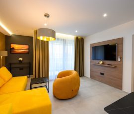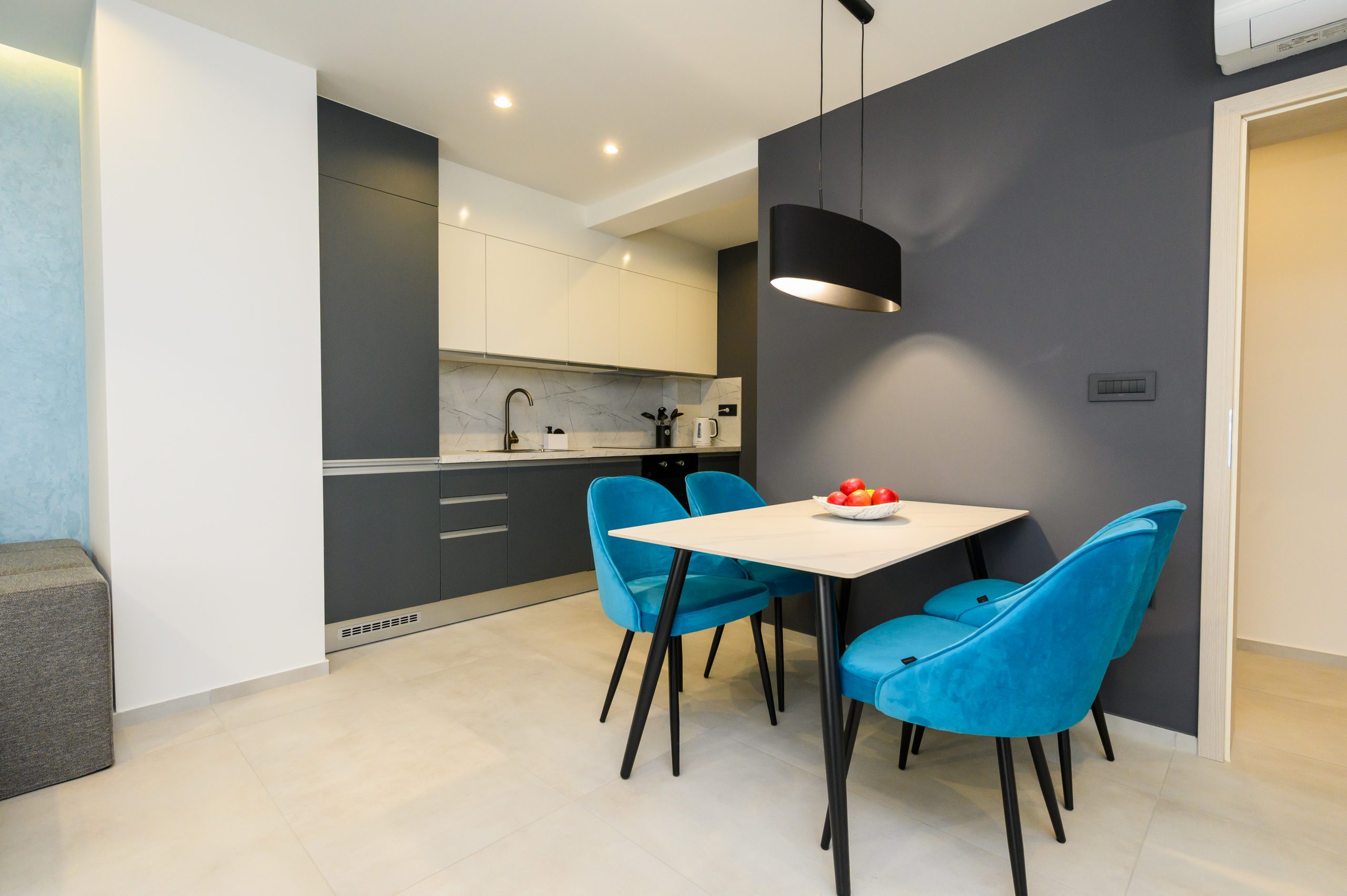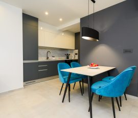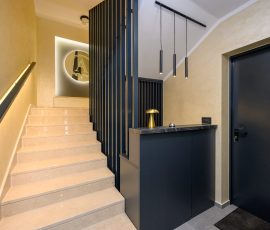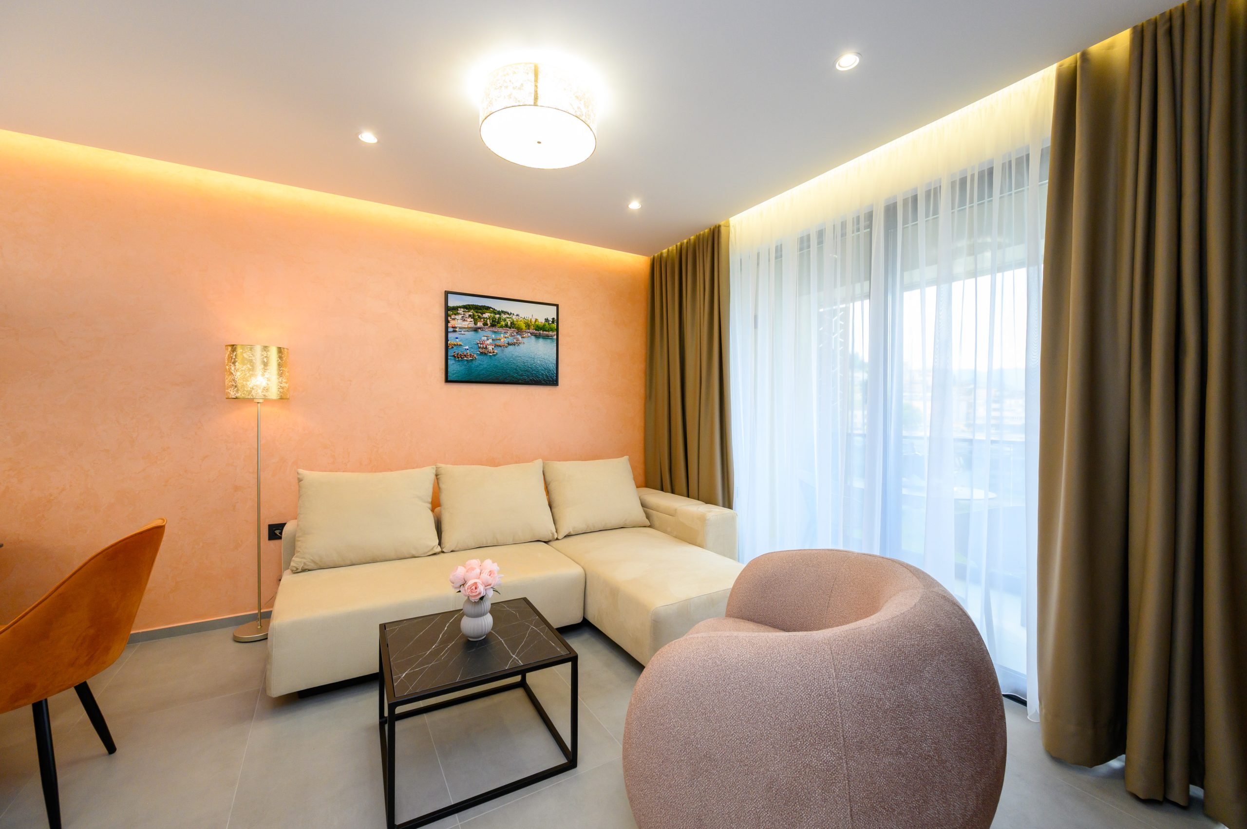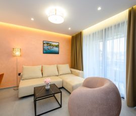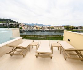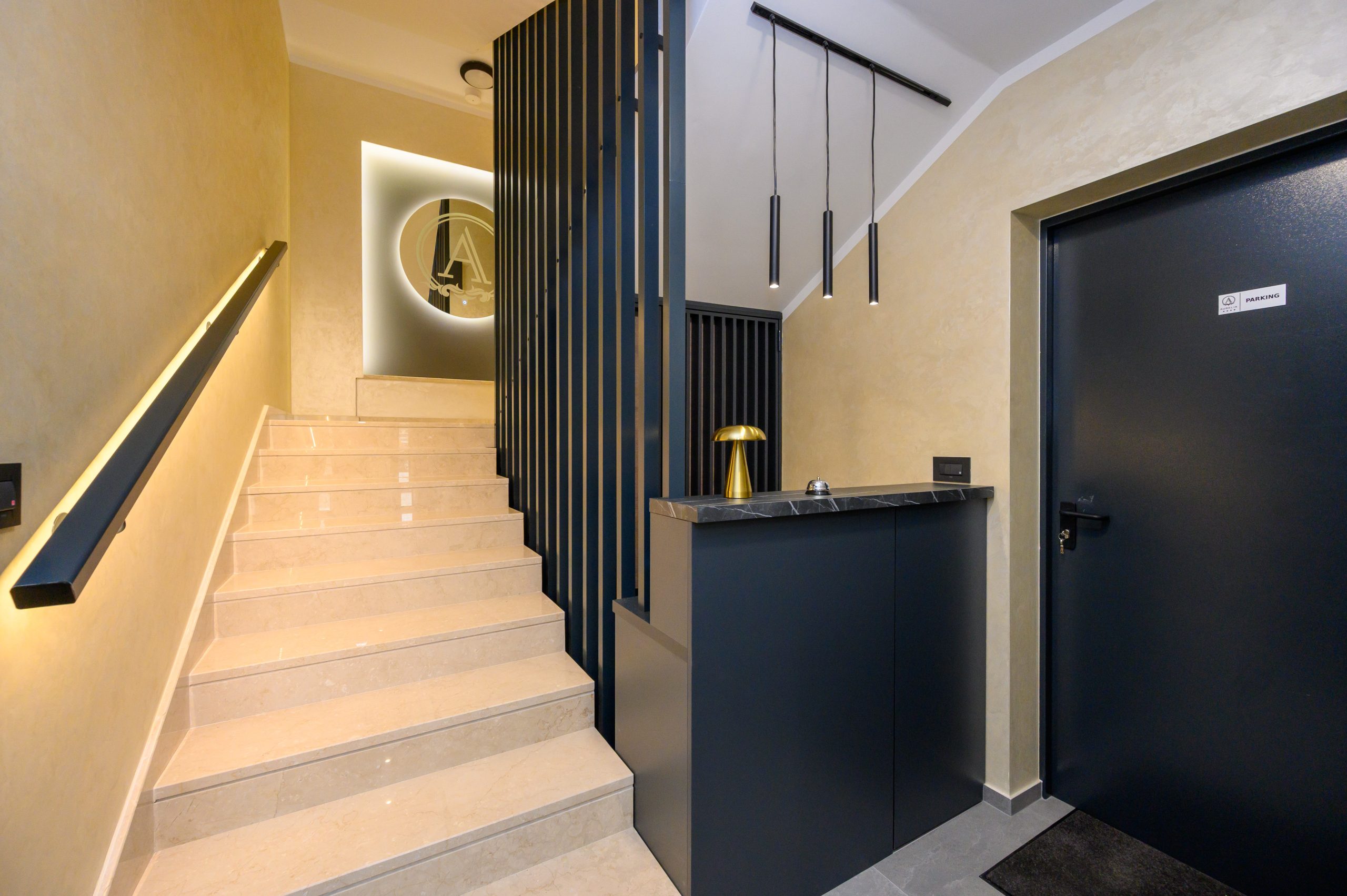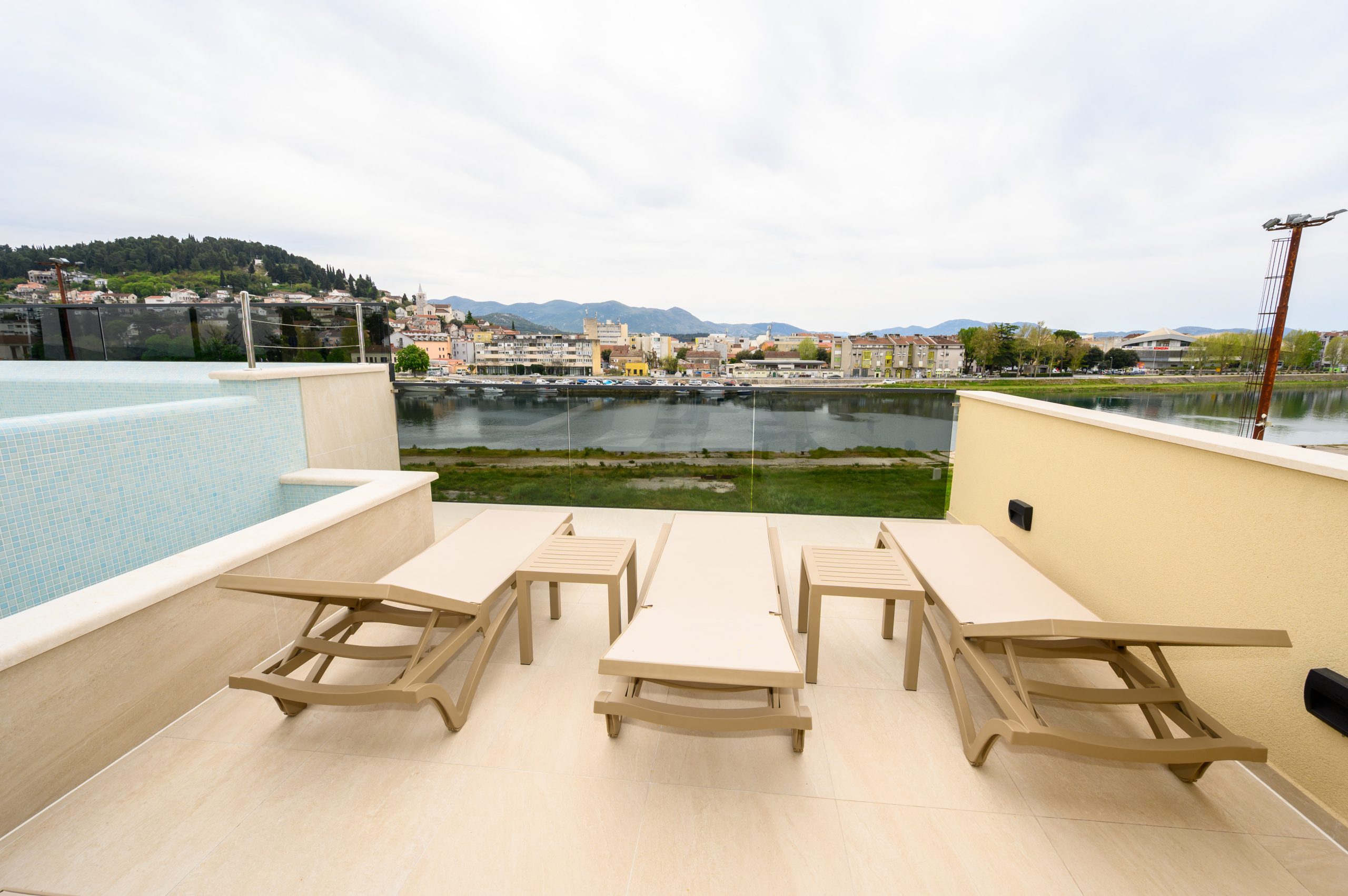 Smješten u frekventnoj ulici koja ima idiličan pogled te blizinu gradske jezgre, objekt je lako dostupan te osigurava parking gostima. Vizualno smo željeli istaknuti pročelje objekta kako bi svaki apartman imao lođu sa pogledom na južnu stranu, odnosno rijeku Neretvu i staru gradsku jezgru. U sklopu toga, formirali smo pročelje koje je funkcionalno, prepoznatljivo, atraktivno i moderno dizajnirano kako bi privuklo poglede svih prolaznika, kako tijekom dana, tako i u večernjim satima. Također, infinity bazenom i finskom saunom željeli smo ponuditi gostima apartmana dodatne sadržaje.