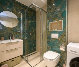 Drugi dio objekta, obuhvaća turističku djelatnost. U prizemlju se nalaze parkirna garažna mjesta sa električnom auto punionicom te pult za prijem gostiju. Na prvom i drugom katu nalaze se apartmani kategorizirani s 4 zvjezdice te se sastoje od hodnika, kuhinje, dnevnog boravka, spavaćih soba, kupaonice, toaleta i lođe. Na trećoj etaži objekta nalazi se zajednički prostor za goste apartmana koji obuhvaća terasu sa infinity bazenom, sunčalište s ležaljkama, natkriveni prostor za sjedenje, krovni vrt, ljetnu kuhinju s kaminom, tuš i finsku saunu.