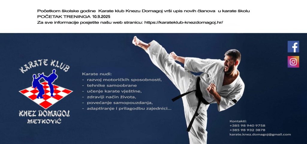 Dragi roditelji, djeco i mladi svih uzrasta, s početkom treninga 10.9.2025 pozivamo vas da se pridružite u našem klubu gdje ćete kroz rad, igru i zabavu razvijati koordinaciju, snagu i fleksibilnost i naravno savladati drevnu vještinu karatea.