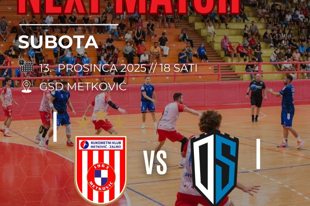 Rukometni klub Metković-ZALMO predstojeće subote, 13. prosinca 2025., u 18:00 sati u Gradskoj sportskoj dvorani (GSD) Metković igra svoju posljednju utakmicu u godini, čime će ujedno biti stavljena točka na prvu polusezonu Paket24 Premijer lige.