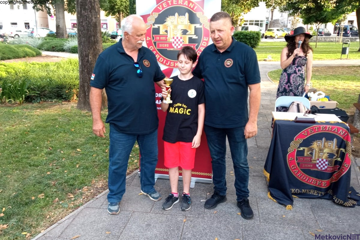 U sklopu Vikend piknik festa u Gradskome parku u Metkoviću danas je odigran šahovski turnir na kojem je Borna Bjeliš osvojio prvo mjesto. Na drugom mjestu završio je Jakov Crnjac, a treće mjesto pripalo je Jakovu Šiljegu.  Pobjednicima su pokale uručili predstavnici Udruge veterana 4. gardijske brigade DNŽ, Boro Obrvan i Ante Pehar.