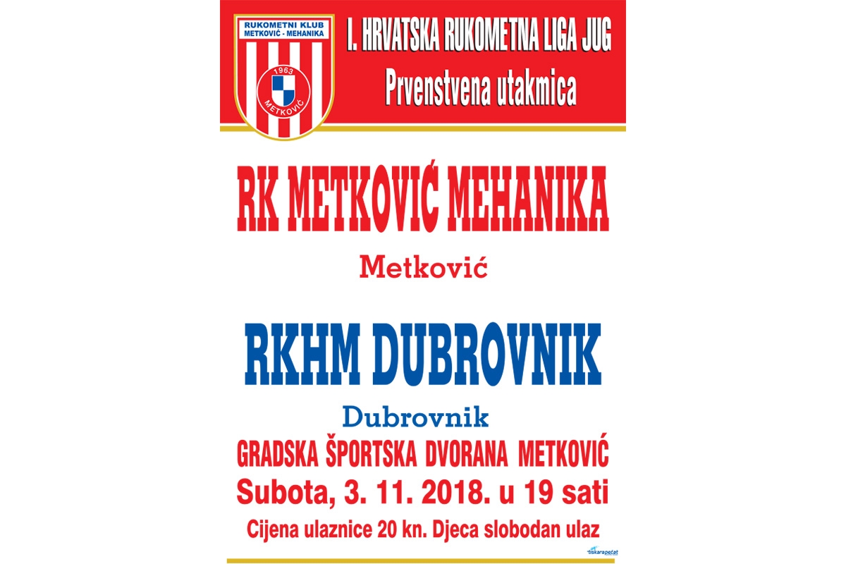 U subotu, 3. studenoga, u 19 sati u Gradskoj sportskoj dvorani u 6. kolu 1. HRL Jug sastaju se RK Metković Mehanika i RKHM Dubrovnik.