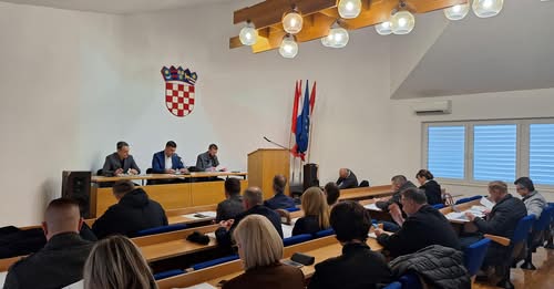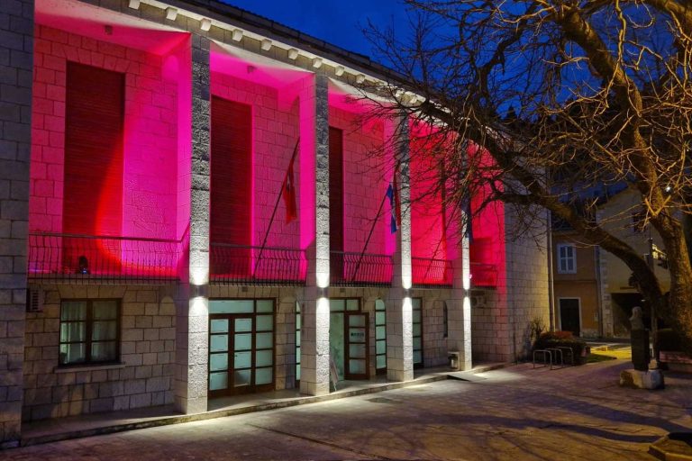 Pročelje GKS-a u Metkoviću osvijetljeno rozom bojom