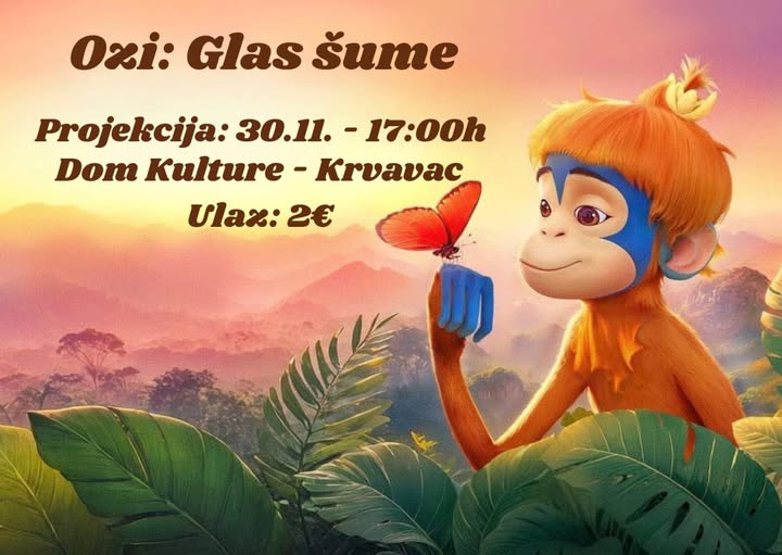 Općina Kula Norinska poziva sve mališane, roditelje i ljubitelje animiranog filma na zajedničko druženje uz filmsko platno. Ove nedjelje, 30. studenog s početkom u 17:00 sati, u Domu kulture Krvavac prikazivat će se animirani hit “Ozi: Glas šume”.