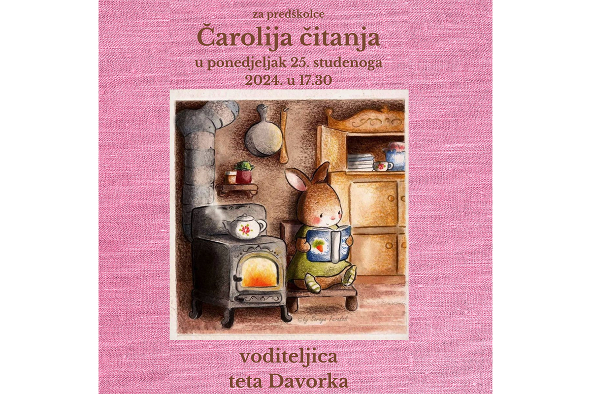 Dragi naši budući čitači i čitačice, pozivamo vas na veselu i poučnu radionicu na kojoj čitamo omiljene priče, razgovaramo i ponešto napravimo svojim ručicama. Kroz čaroliju vas vodi teta Davorka, a ona je za vas pripremila jednu super priču.