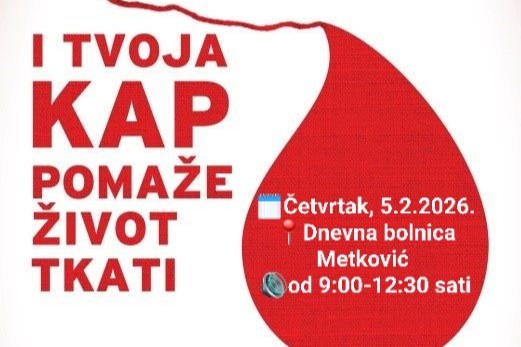 Gradsko društvo Crvenog križa Metković najavilo je novu akciju dobrovoljnog darivanja krvi koja će se održati ovoga četvrtka. Iz društva su uputili topao i motivirajući poziv svim građanima, a posebno onima koji se možda još dvoume postati darivatelji.