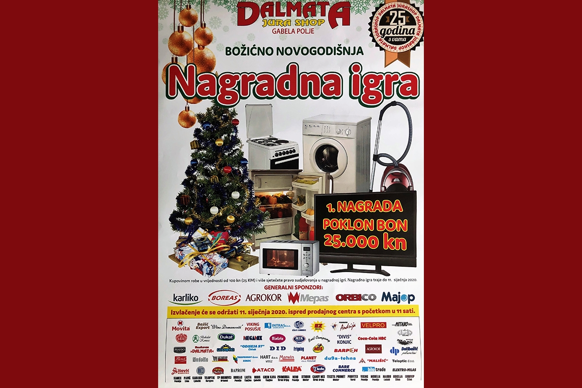 Danas počinje najbogatija Božićno – Novogodišnja nagradna igra Dalmate Jura Shop-a: Za 25 godina postojanja osvojite poklon bon od25 tisuća kuna