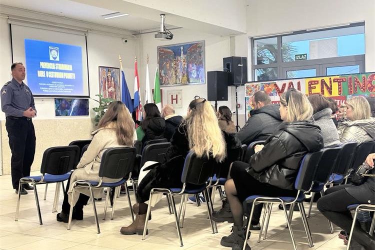 Policijski službenici Postaje prometne policije Dubrovnik na tematskom roditeljskom sastanku svih roditelja OŠ Ivana Gundulića u Dubrovniku, održali su predavanje na temu sigurnog sudjelovanja njihove djece u cestovnom prometu.