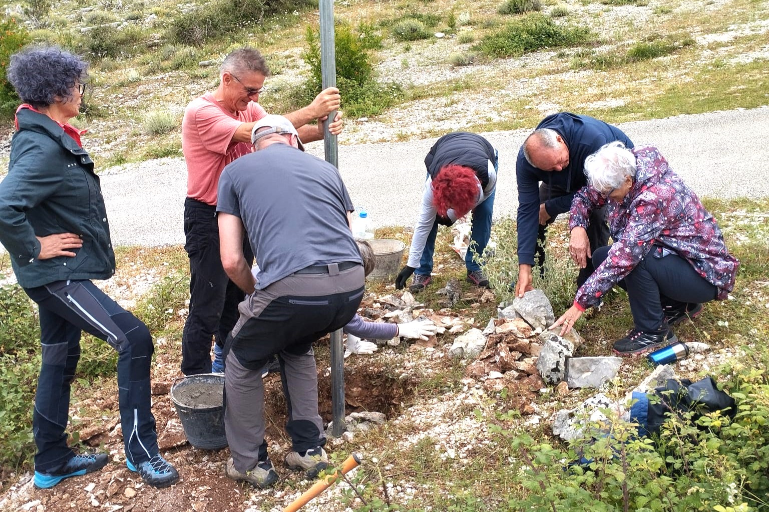 Poslije dugog niza godina korištenja staze jučer su postavljene table sa putokazima i vremenom potrebnim za uspon, te obnovljene markacije na stazi. Postavljanje tabli izvedeno je zajedničkim snagama naših vrijednih članova. Markiranje je također bila zajednička akcija, ali pod budnim okom i vodstvom naše licencirane osobe za markacije Rebije Pekić . Iscrpljeni teškim i napornim radom sudionici akcije okrijepili su se kod na Vidonjama kod našeg člana i uvijek spremnog i raspoloženog domaćina Ivica Obšivač.