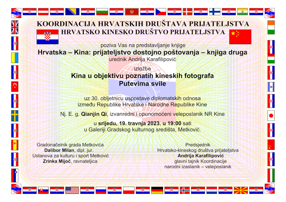 Predstavljanju knjige i otvaranju izložaba nazočit će i Nj. E. g. Qianjin Qi, izvanredni i opunomoćeni veleposlanik NR Kine.