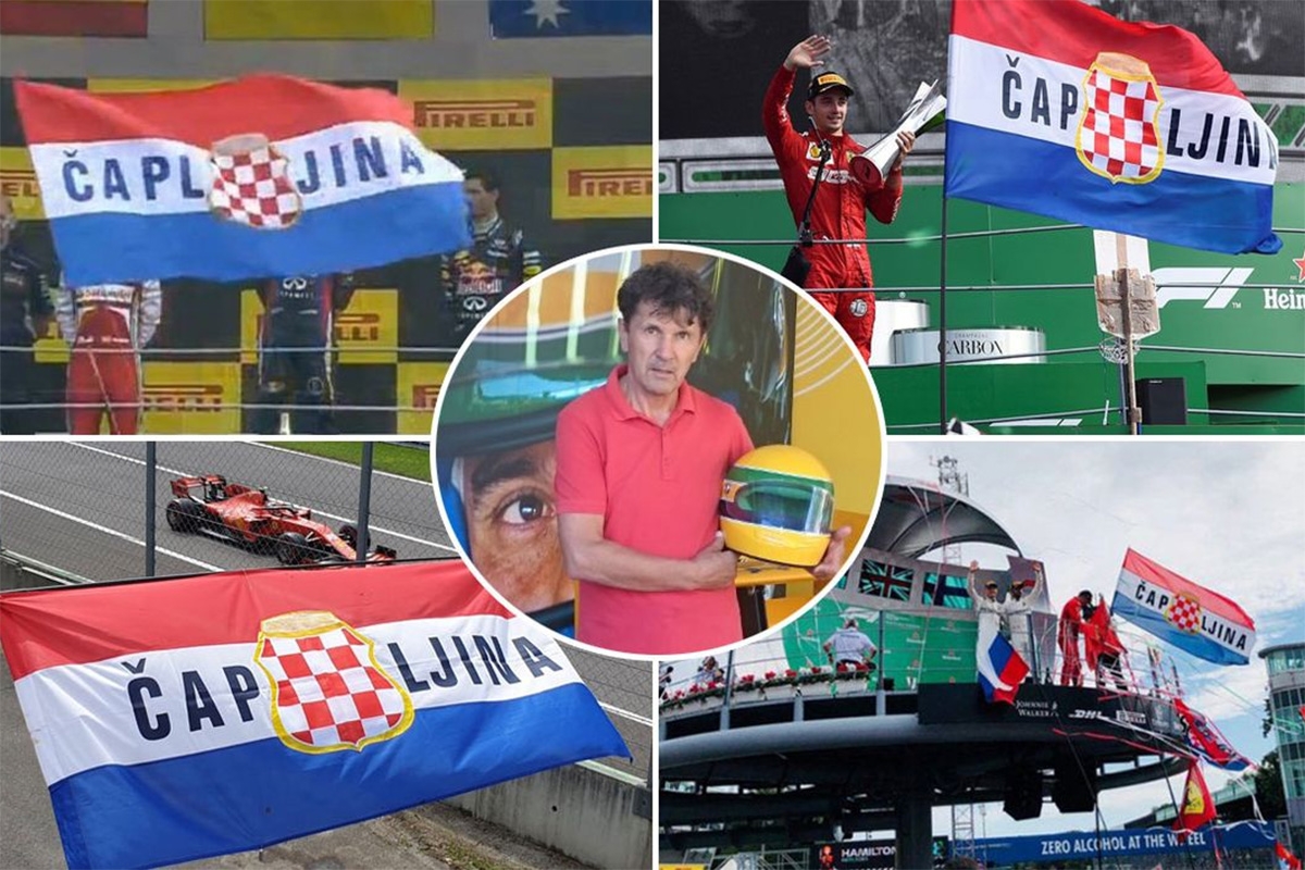 No, tada je mnogima u oko upao zanimljiv detalj, naime u trenutku proslave vozača Ferrarija ispred njega se vijorila zastava Herceg-Bosne s natpisom Čapljina.