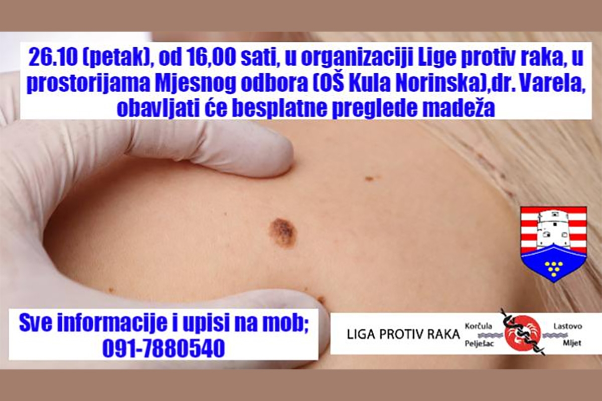 Preventivne dermatološke  preglede, bez plaćanja i bez uputnice, vršiti će spec. dermatolog dr. Adrijana Varela-Camino iz Dubrovnika