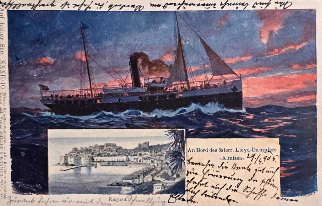 Putovanje su reklamirali da će biti organizirano sa novim i udobnim parobrodima što je obzirom na putovanja koja su se obavljala prije i bio veliki luksuz i napredak u udobnosti. Talajić je pronašao podatke da se iz Trsta polazilo 12. svibnja u 11 sati, povratak se planirao 23. svibnja u večernjim satima. Putovanje je obuhvaćalo posjet Pule, Zadra, Šibenika, Trogira, Splita, Korčule, Gruža, Kotora, Komiže, Visa, Metkovića i Malog Lošinja. Bečki ured poznate agencije Thomas&Cook&Sohn bio je zadužen za organizaciju izleta po dalmatinskom kopnu. Uz uobičajene posjete slapovima Krke, Lokrumu,Modroj Špilji, izvoru rijeke Omble, putnicima se pružila mogućnost da posjete Cetinje, prijestolnicu Crne Gore. Za izletnike koji su željeli posjetiti Bosnu i Hercegovinu, agencija je organizirala poseban izlet iz Metkovića „kroz provincije okupirane i stavljene pod vlast Beča“. Te iste godine organizirano je na jesen još jedno putovanje. Znači parobrod Metcovich je već vrlo rano nakon porinuća uplovio u luku grada kojega je nosio ime. U metkovsku luku često je uplovljavala i Almissa, ali, prema Talajićevim saznanjima, nikada nije uplovila u grad čije je ime nosila.