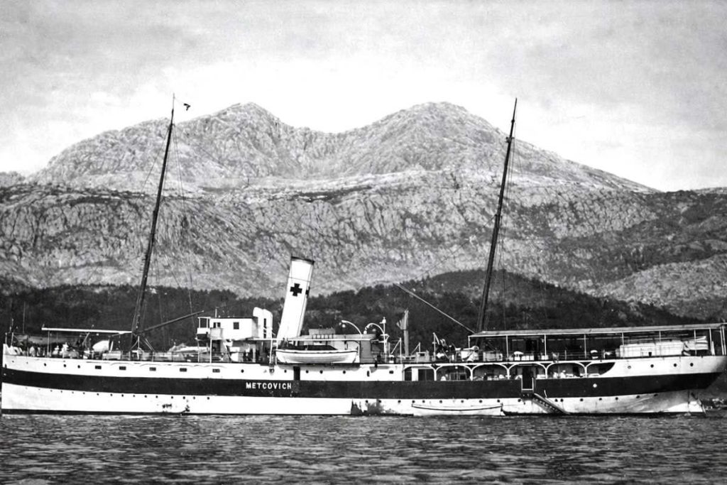 Parobrod Metcovich je nakon više od 20 godina mirne plovidbe Jadranom na turističkim i izletničkim turama prema Veneciji i Dalmaciji vihor Prvoga svjetskog rata doveo u novu i posebnu ulogu. Ulogu koju je imalo samo sedam brodova Austrougarske mornarice i to Africa, Enterpe, Elektra, Tirol, Helouan, Wien i Metcovich prema novinama Novosti od 31. kolovoza 1914. Već 16/17 kolovoza 1914. Austrougarska mornarica je rekvirirala od Austrijskog Lloyda parobrod Metcovich i prenamijenila ga u brod bolnicu (spitalschiff II). Dobio je i vojnu oznaku SS Metcovich. Osim njega su rekvirirani i parobrodi Elektra kao spitalschiff I i Tirol kao spitalschiff III.