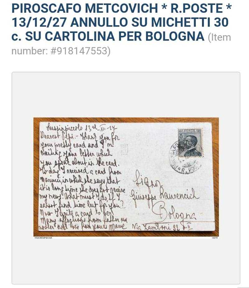 Do kraja rata na njemu nisu popravljena oštećenja već je otegljen na područje sjevernog Jadrana. Ponovno ga nalazimo prilikom podjele Austro-Ugarske trgovačke i vojne flote nakon Prvog svjetskog rata 1919. Parobrod Metcovich vraćen se svom vlasniku Lloyd Austriatico, vjerojatno zbog svojih godina i nesaniranih ratnih oštećenja. Pod zastavom Tršćanskog Lloyda plovio je do 1925., uglavnom između Trsta i Korčule, te na liniji Trst-Ancona-Šibenik.