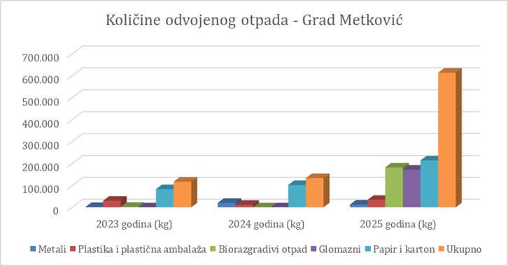 Grad Metković posljednje tri godine bilježi značajan rast količina odvojeno skupljenog otpada, a sve zahvaljujući uloženim naporima u izgradnju kvalitetne infrastrukture, te ispravnim promišljanjima i planskom pristupu rješavanu problema otpada.