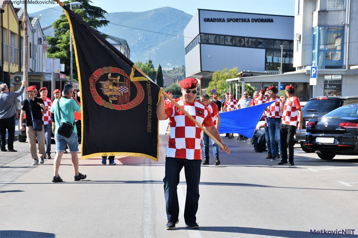 U čast 25 .obljetnice OLUJE  Veterani 4. GBR nacrtali su mural s grbom 4. gardijske brigade ispred kojeg je jutros u 9 sati krenuo mimohod sa velikom hrvatskom zastavom i latinskim sloganom IN HOC SIGNO VINCES (u ovom ćeš znaku pobijediti) s grba četvrte, do spomenika poginulim braniteljima na Trgu Kralja Tomislava u Metkoviću gdje su zapaliti svijeće i položiti vijenace. Mimohodu se pridružio i gradonačelnik Dalibor Milan. Pogledajte fotogaleriju.