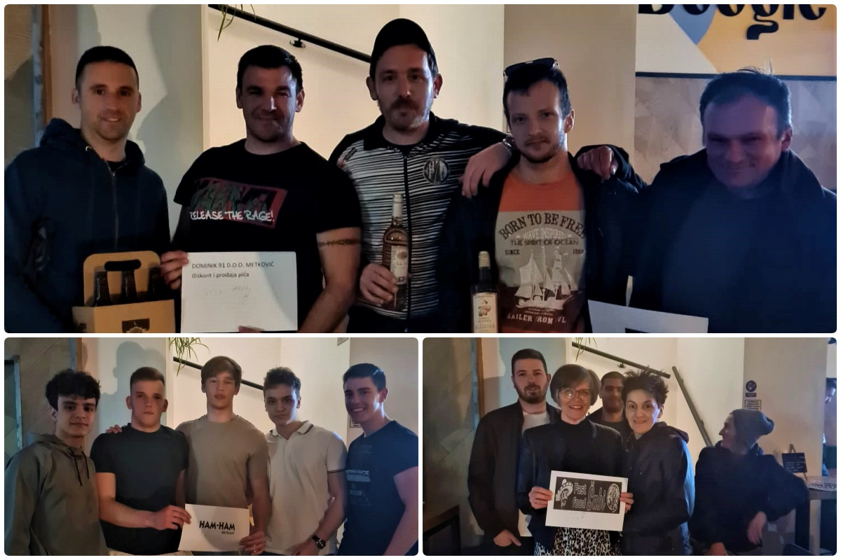 Uz puno dobre zabave, nagrada, smijeha, pjesme te poneku čudnu kategoriju odradili smo još jedan kviz. Odazvali ste se u ogromnom broju i na tom vam veliko HVALA. Ukratko, prvo mjesto odnosi ekipa Dildo Baggins, drugo mlada ekipa Tupakamaru, treće Zvončići. Četvrto mjesto pripada ekipi Smokova a peto i šesto ekipama Cukeri i Tarmi Rićmi Posebne zahvale našim sponzorima a to su: PIZZERIA MILANO, HAM-HAM, FAST FOOD ŠABI, KINO POBJEDA, SLATKI KUTAK, VINA LAGUNA, DOMINIK 91, PIVOVARA BREWVILLE, BOOGIE I OPG JELAŠ. Kvalitetan after party, pokvario je potres. Nagrađene i kako je to sinoć bilo pogledajte u foto prilogu. Zdravi i veseli bili vaš MTKviz.
