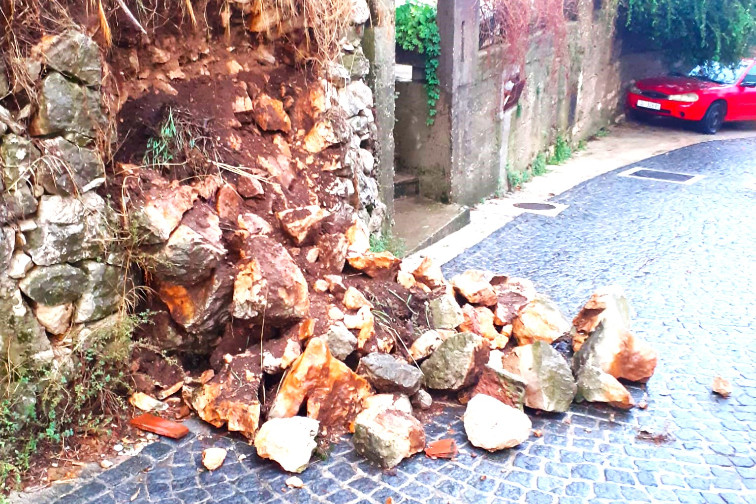 Noćas oko 4 sata grmljavinsko nevrijeme, praćeno tučom i većom količinom oborina zahvatilo je Metković. Naši sugrađani poslali su nam fotografiju odronjenog zida na Lovačkom putu. Nadamo se da će se ovaj suhozid brzo sanirati, jer se radi o dosta važnoj i prometnoj ulici.