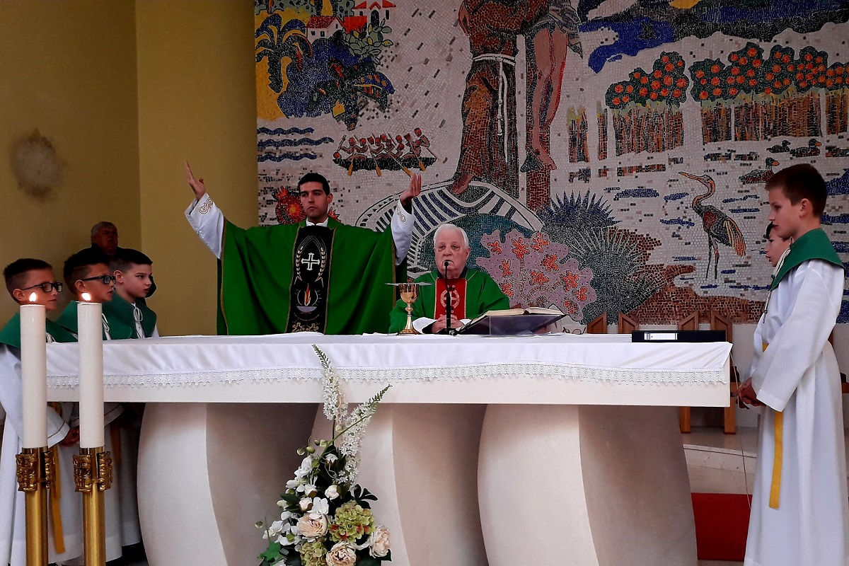 Misu u nazočnosti brojnih vjernika predvodio je umirovljeni svećenik fra Mario Jurišić u koncelebraciji fra Darija Sinkovića, župnog vikara Župe sv. Ilije, rodne Župe oca Gabrića, koji je ovom prigodom predstavio svoju 60. knjigu „Kalendar i meteorologija“, te najavio i novu knjigu za narednu godinu „Osjećaji“, uz obrazloženje kako čovjek koji nema srca nije ni čovjek ni kršćanin, te da se čovjek ne mjeri po znanju i pameti, već po srcu! Misno slavlje animirao je dio zbora pod vodstvom s. Mile Deak.