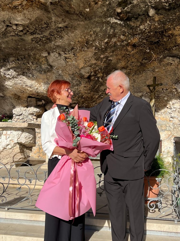 Točno na dan svoje obljetnice, 22. veljače, supružnici su odlučili svečano obilježiti pola stoljeća zajedništva obnovom bračnih zavjeta. Ovaj dirljivi čin održao se u predivnom i duhovnom ambijentu svetišta Vepric, u krugu obitelji i kumova.