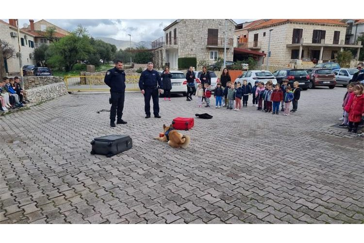 Nakon što su izveli pokaznu vježbu pronalaska droge među torbama, odgovarali su na brojna pitanja djece u svezi policijskog zanimanja.