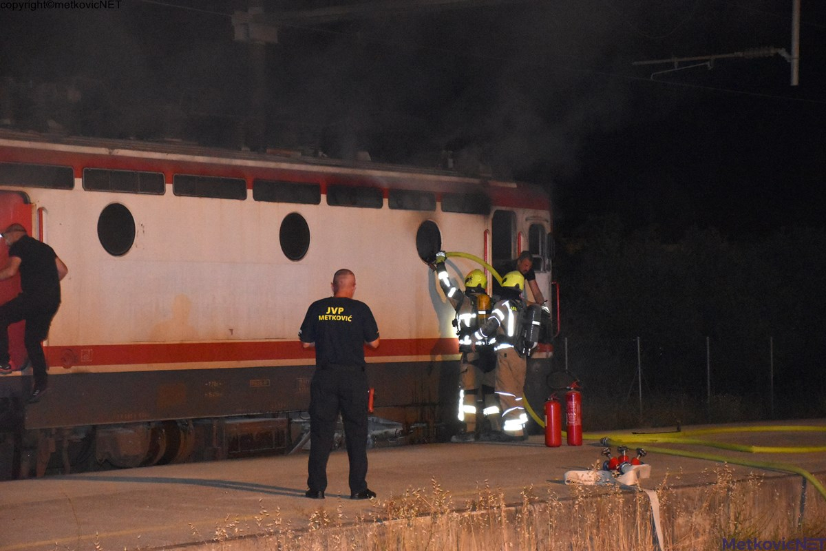 Brzom intervencijom JVP-a Metković ugašen je požar na lokomotivi teretnog vlaka. Uzrok požara nije poznat. Špekulira se da se zapalio kompresor stroja. Nije bilo ozlijeđenih. Na terenu su i pripadnici PP Metković.