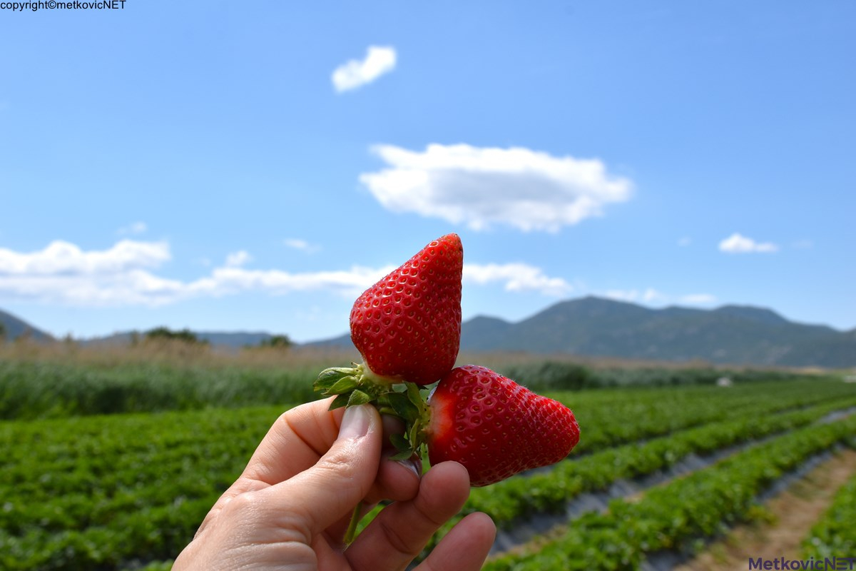 Jagode godinama proizvodi Petar Bjeliš na plantažama nedaleko od Ušća Neretve. Ovog proljeća očekuje urod od oko 25 tona ukoliko ne bude ekstremnih vremenskih neprilika jer se proizvodnja odvija na otvorenom.