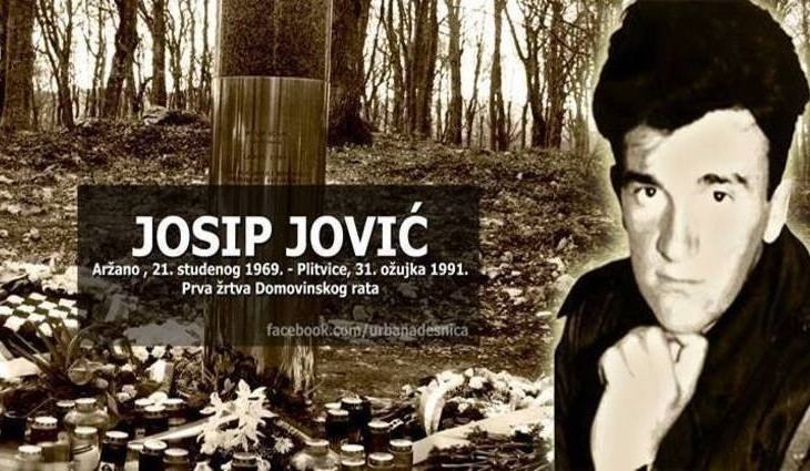 Josip Jović rođen je 21. studenoga 1969. godine u Aržanu kraj Imotskog. U kolovozu 1990. godine priključio se Jedinici za specijalne namjene MUP-a “Rakitje”. Prije Akcije Plitvice s tom jedinicom je bio na terenu u Pakracu i Petrinji. Ubijen je na sam Uskrs 31.03.1991. od strane srpskih terorista. Nakon nesretne pogibije pokopan je uz sve vojne počasti na mjesnom groblju u Aržanu. Na Uskrs 1994. u Aržanu mu je otkriven spomenik. Josip Jović posmrtno je promaknut u čin bojnika.Odlikovan je visokim državnim odličjima: Redom Petra Zrinskog i Frana Krste Frankopana s pozlaćenim pleterom; Spomenicom Domovinskog rata; Spomen značkom I. gardijske brigade “Tigrovi”; Spomenicom I. poginulog redarstvenika Ministarstva unutarnjih poslova u Domovinskom ratu. Prema riječima suboraca, Jović je bio među prvima u napadu pucajući prema pošti. Iako je na sebi imao pancirku, jedan od terorista ga je pogodio u nezaštićeni dio tijela. Kola Hitne pomoći stigla su u trenu, a potom je ukrcan u sanitetski vojni helikopter, još uvijek dajući znakove života.Međutim, preminuo je na putu do bolnice. Tako je dvadestdvogodišnji Josip Jović kao prva žrtva velikosrpske agresije na Republiku Hrvatsku u Domovinskom ratu, postao velika i istinska legenda na samom početku borbe za nezavisnu i slobodnu hrvatsku državu.