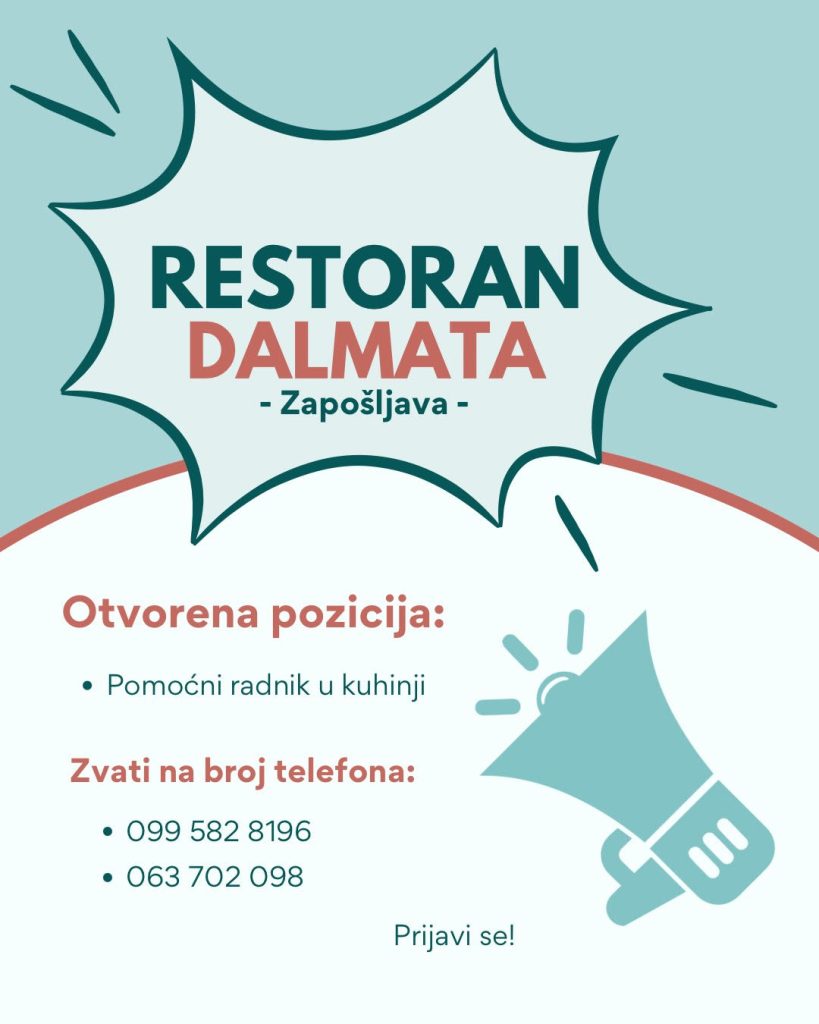 Restoran Dalmata traži pomoćnog radnika u kuhinji!