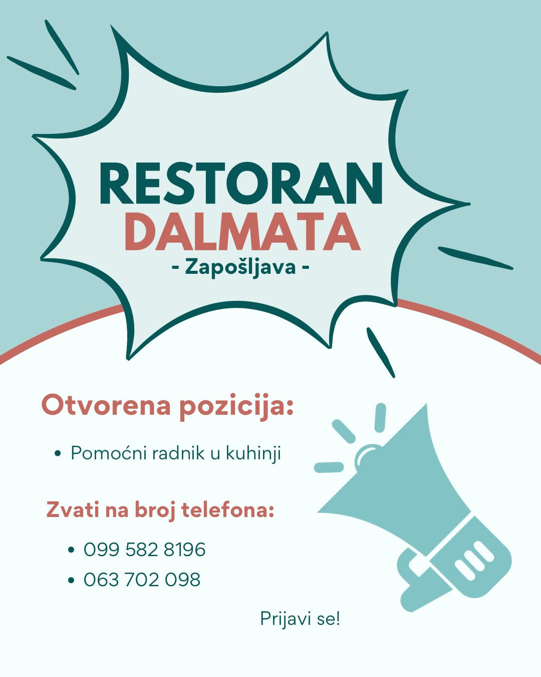 Restoran Dalmata traži pomoćnog radnika u kuhinji! Idealna osoba voli rad u dinamičnom okruženju, timski rad i dobru hranu.