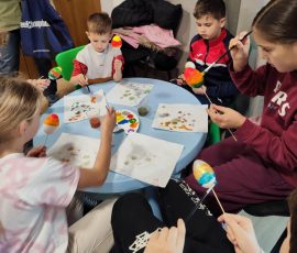 Kreativni zanos nastavio se i četvrtog dana aktivnosti kada su na red došla stiroporna jaja. Uz pomoć tempera i mnoštva šljokica, kao i kroz slobodno crtanje i bojanje raznih uskrsnih motiva, sudionici su još jednom pokazali svu raskoš svog talenta.
