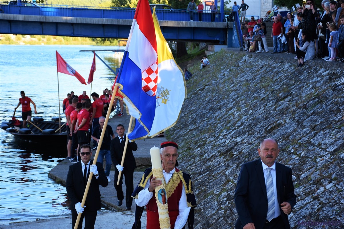 Doček je lađara bio je na Velikoj rivi. Uz pratnju Gradske glazbe Metković svečani mimohod kreno je do crkve sv. Ilije. Nakon blagoslova svečana se zastava spuštena je niz zvonik. Uslijedila je sveta misa koju je predvodio dr.sc. fra Šimun Bilokapić.