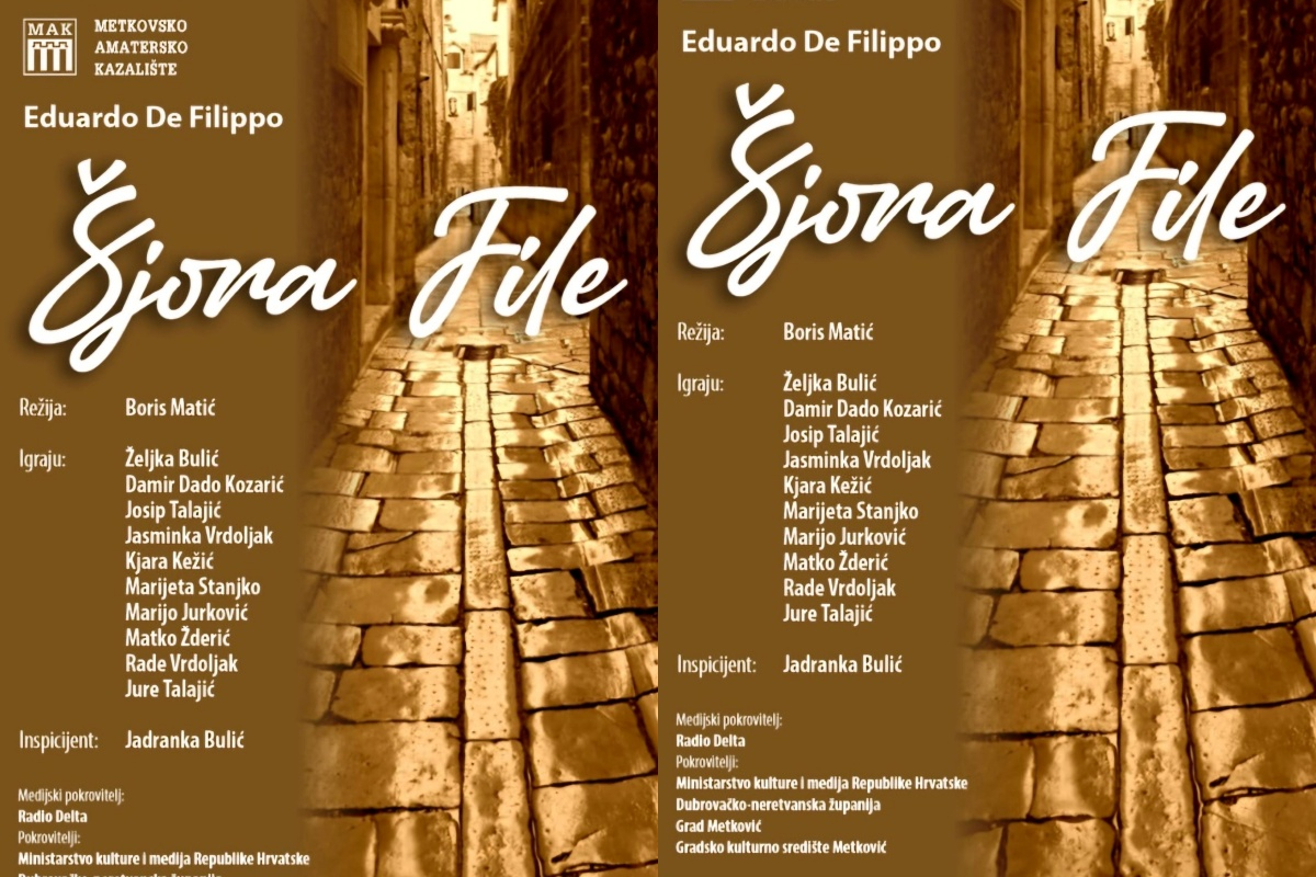 ‘Šjora File’ naziv je predstave koju će Metkovsko amatersko kazalište premijerno izvesti u Gradskome kulturnom središtu u Metkoviću u četvrtak, 28. studenoga s početkom u 20 sati.
