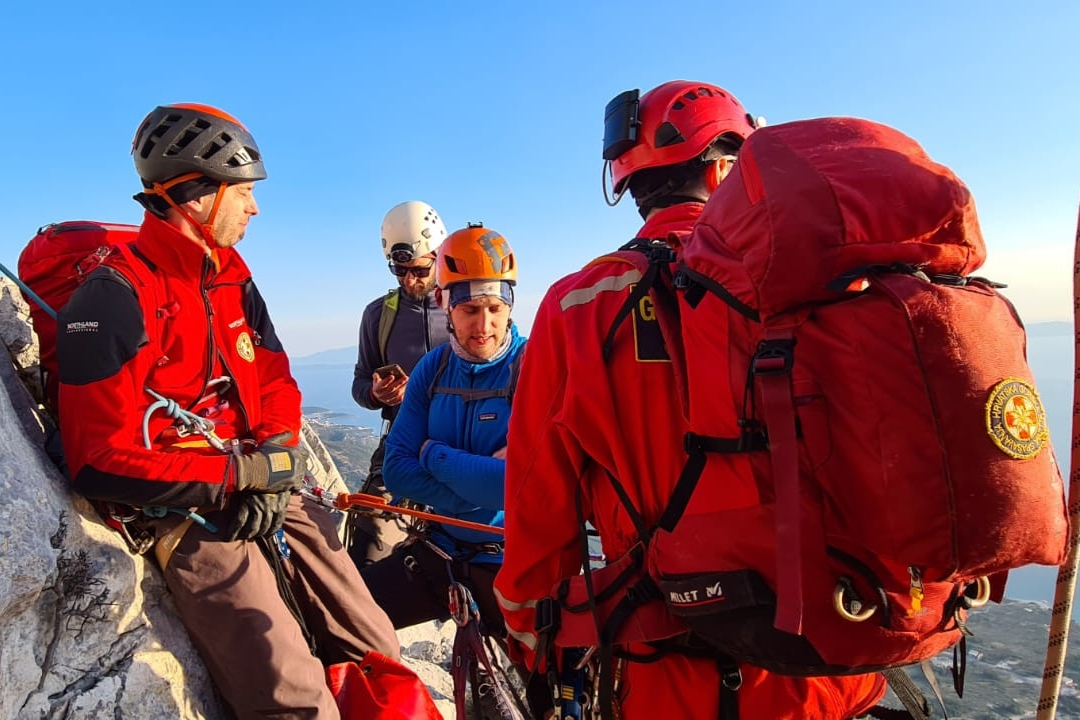 Ekipa od 12 spašavatelja HGSS stanice Makarska pristupa mjestu nesreće zemaljskim putem, a ujedno se organizira ekipa od 10 spašavatelja koji će sudjelovati u pokušaju izvlačenja penjača iz zraka.
