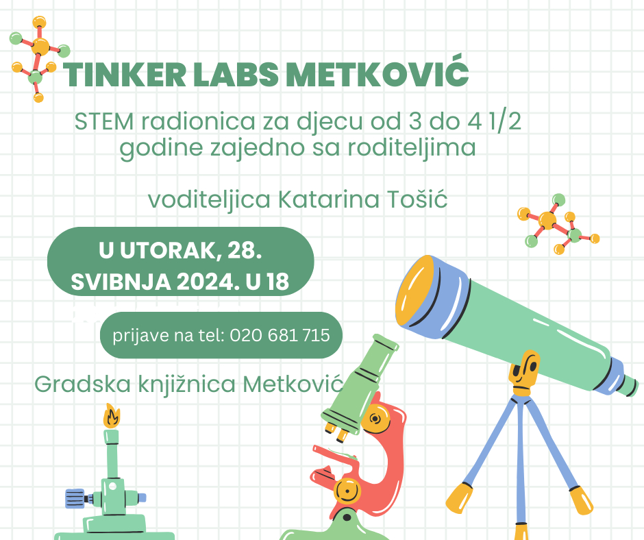 Draga djeco, pozivamo vas na zabavnu znanstvenu radionicu gdje ćemo vas uvesti u svijet STEAM-a (znanost, tehnologija, inženjerstvo, umjetnost i matematika) na inovativan i kreativan način.