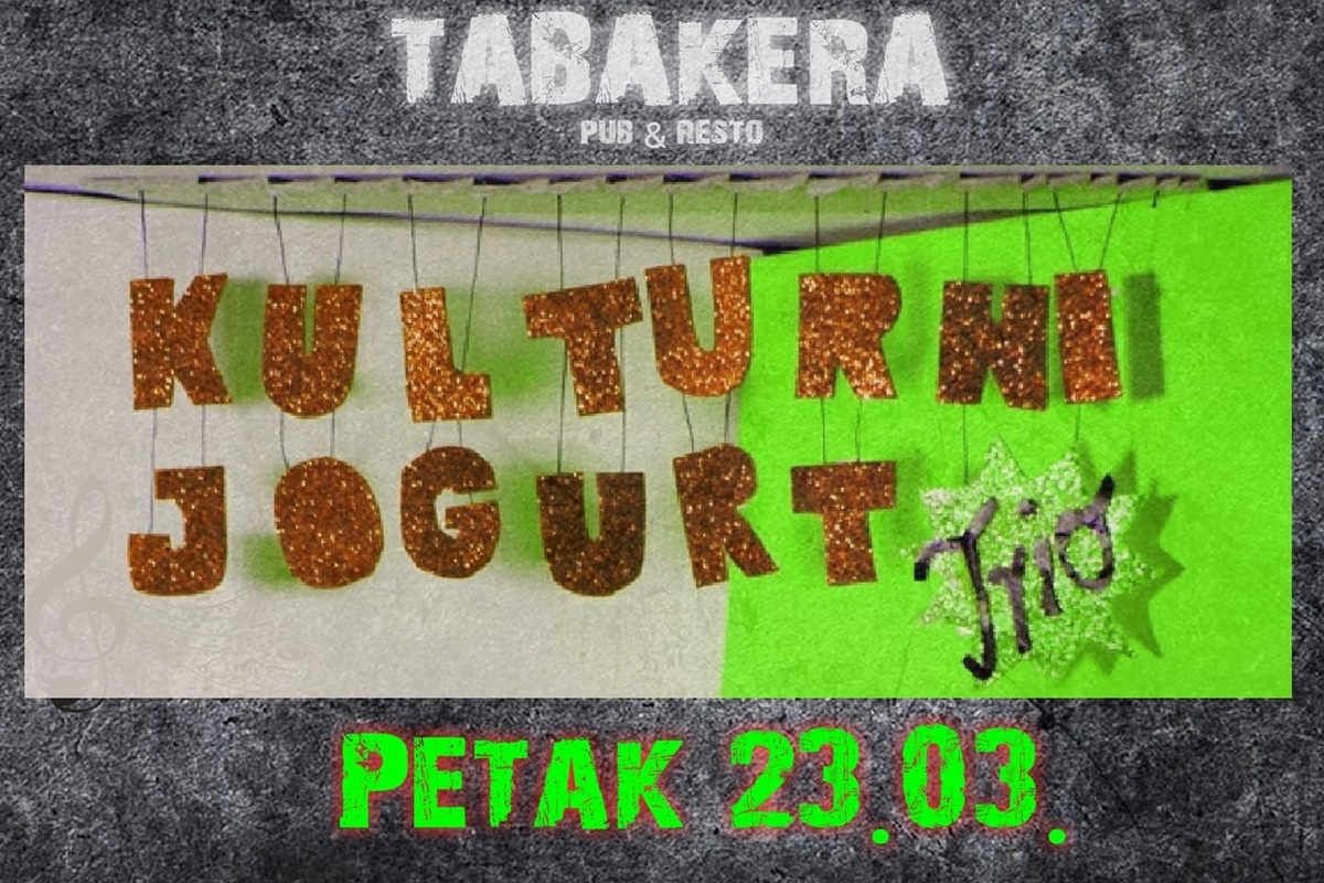 Volite classic rock, funk, domaću rock glazbu, onda sutra obvezno posjetite pub Tabakera u Metkoviću jer nastupa ‘Kulturni jogurt’. Iskusni trio – Noa, Dujma i Hrvoje sigurno vas neće razočarati. Ugodnom ambijentom i odličnom glazbom učinite sebi i društvu nezaboravni petak.