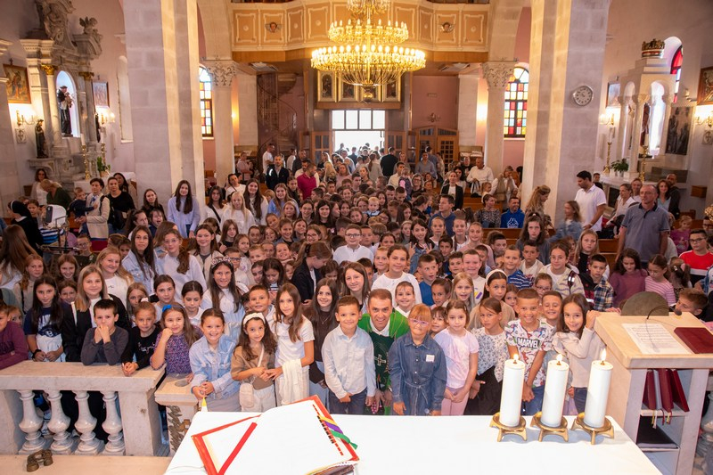 Nakon mise vjeroučiteljice Mirela i Elena su učenicima podijelile simbolične darove: olovku s porukom i slatkiš. Prije toga je bilo zajedničko fotografiranje.
