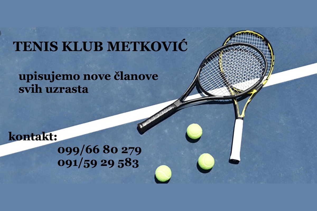 Tenis klub Metković vrši upis novih članova. Sve informacije glede upisa možete dobiti na brojeve telefona 099 66 80 278 i 091 59 29 583.