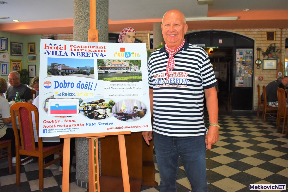 Posjetili smo danas Villu Neretvu i popričali s našim vodećim neretvanskim ugostiteljem Pavom Jerkovićem. Zatekli smo ga u društvu novinarki  časopisa Glorija, koje je proveo i pokazao ljepote doline Neretve. Ispred hotela zatekli smo 2 autobusa slovenskih turista koje je turistička agencija Relax iz Slovenije dovela u suradnji s Pavom Jerkovićem u Neretvu. Neretvanska mandarina daleko je poznat i priznat poljoprivedni proizvod,a  gosti iz Slovenije mogli su ih danas brati sa stabla. Upravo je ova vrsta ponude produžila turističku sezonu u Neretvi za 5 tjedana – rekao nam je naš domaćin, poznati neretvanski ugostitelj , Pavo Jerković . Evo što je kratko izjavio u videoizjavi za MetkovicNET.