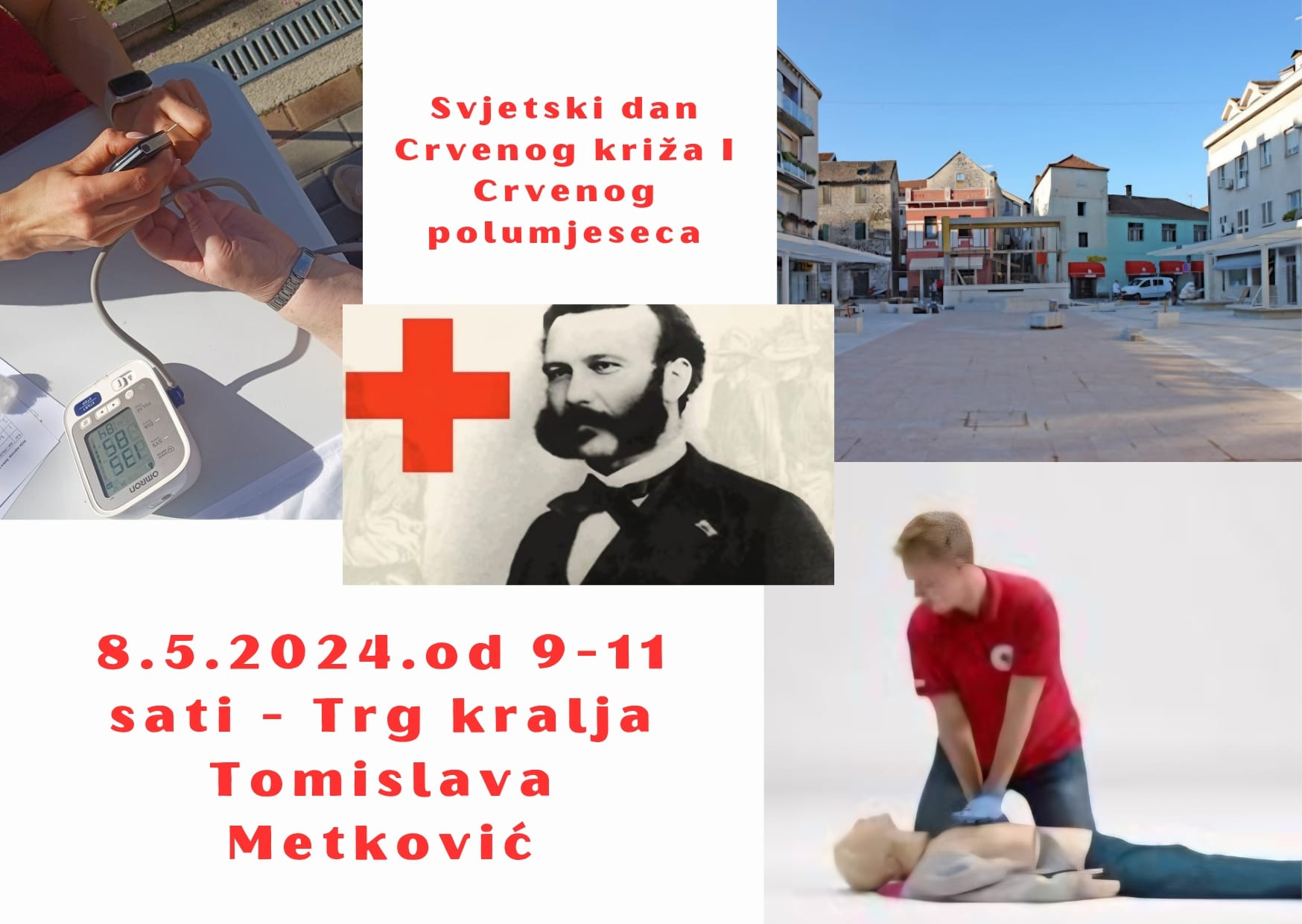 Povodom obilježavanja Svjetskoga dana Crvenoga križa i Crvenoga polumjeseca, Gradsko društvo Crvenoga križa Metković u srijedu, 8. svibnja će na Trgu kralja Tomislava u vremenu od 9 do 11 sati provesti sljedeće aktivnosti: