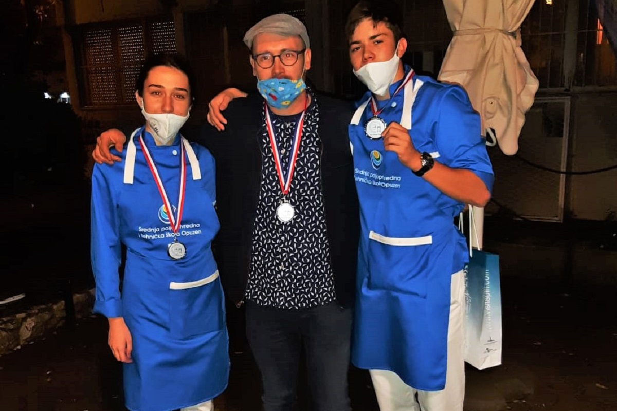 Predstavnici naše škole , učenici 3.a, zanimanja agroturistički tehničar Marta Curić i Josip Dropulić natjecali su u timskom natjecanju gdje su trebali samostalno pripremiti tri slijeda jela i pritom osvojili sjajno drugo mjesto i srebrnu medalju. Uz mentora Miju Ćelića u pratnji učenika bila je i nastavnica Simona Pavlović.