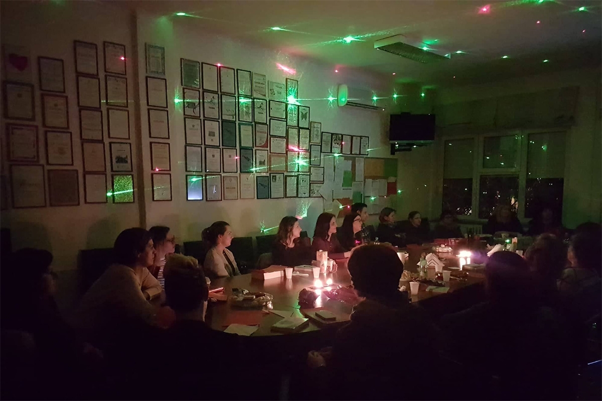 Ove su godine  naši učitelji u akciji.  Nesebično i s ljubavlju, lijepo omotane i ukrašene knjige  darovane su iz ruke jednog učitelja u ruke drugog da zabave, odmore i nadahnjuju sve one koji ih budu čitali. Bila je to opuštena i predivna večer u kojoj se osim razmjene knjiga u popularnoj igri izvlačenja, pjevalo i recitiralo nešto ljubavno. Učiteljima nije bila strana ni romantika;  mirisne svijeće i   šarene zrake raspršene po zidovima dale su naslutiti da školski prostor, prema potrebi, može poprimiti puni intimniji ugođaj.